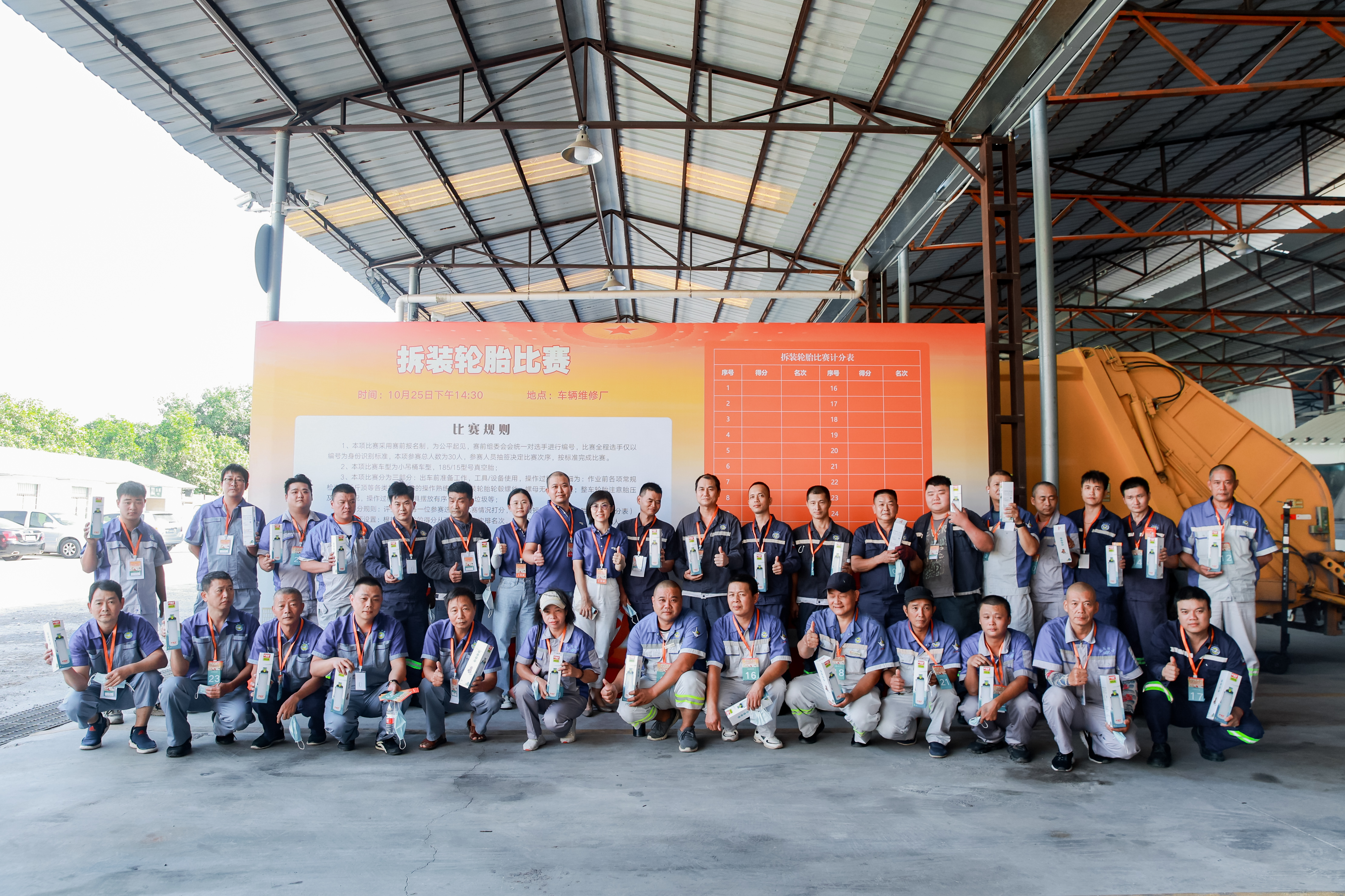 在技能竞赛活动中的拆装轮胎比赛环节,活动主办方特地邀请厦门正新橡胶工业有限公司的研发技术人员,对参赛的环卫工人进行标准化的技术指导,并为参赛人员贴心准备了保温杯作为活动礼品。