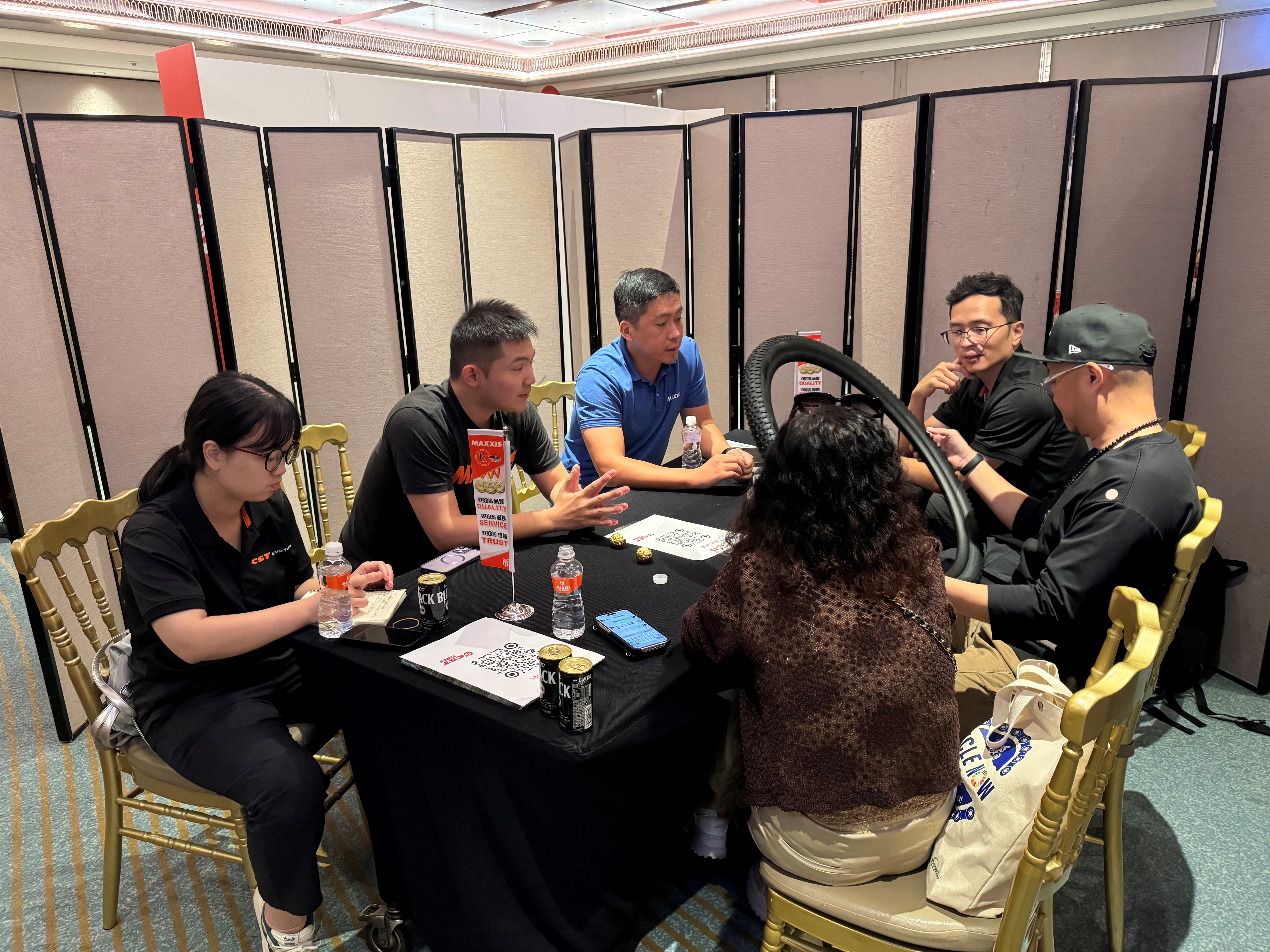CST正新轮胎高品质且多元化的产品吸引了众多采购商的关注和咨询,现场洽谈合作并下单订购。