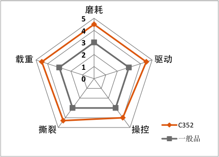 采用新工艺炭黑,具有更高表面活性,使碳黑与聚合物产生很强的机械/物理化学相互作用,耐磨及低生热性能优异。