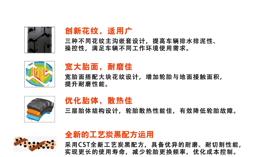 CST抗静电配方实现轮胎优异导电性能,电阻值低于105Ω,有效排除静电。适用于石油、化工、军方等易燃、易爆等作业环境。