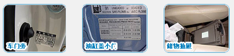 ● 轿车驾驶座车门上的标贴。