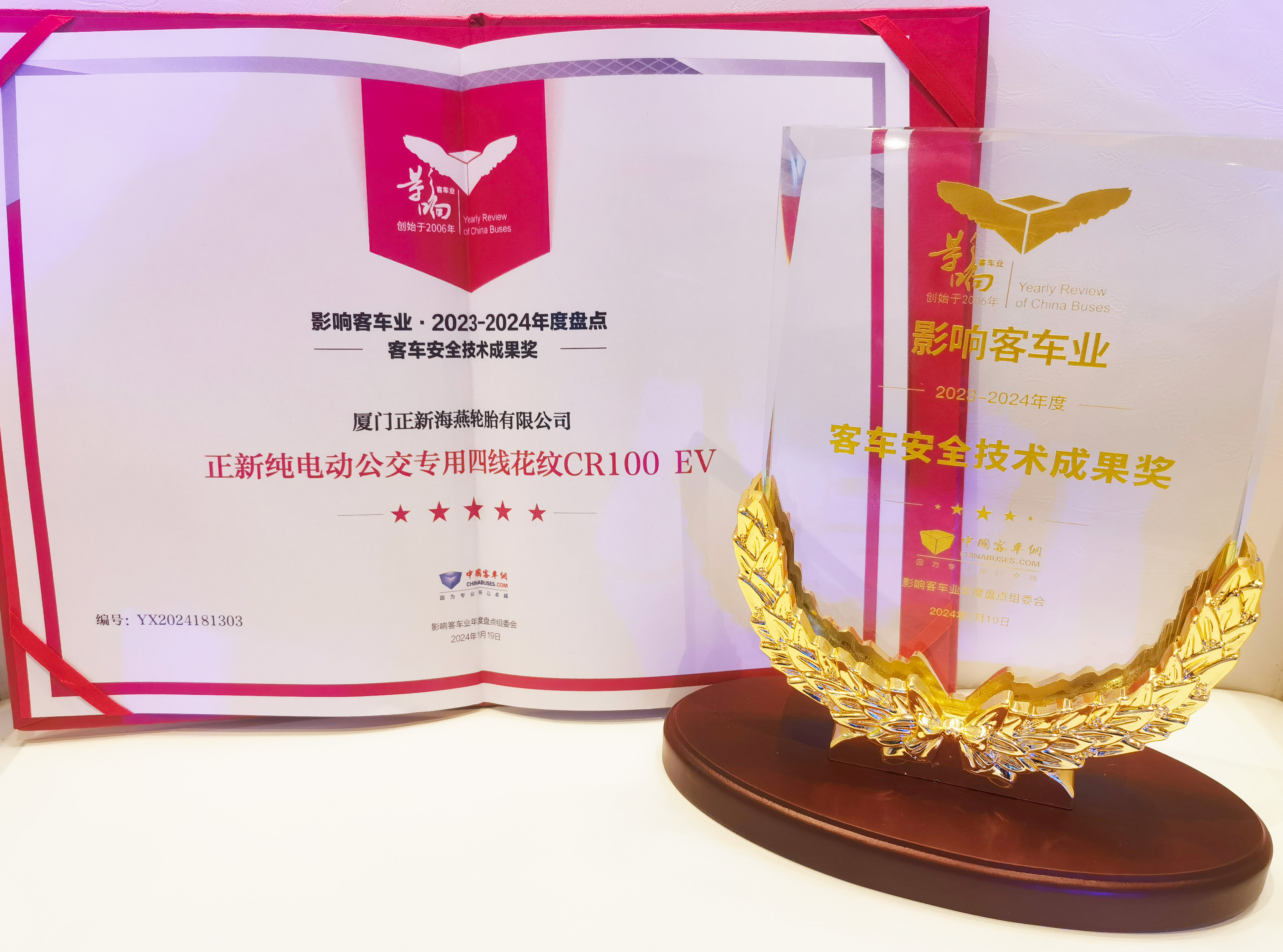 经过行业专家层层筛选及投票评审,正新公交纯电动专用胎CR100EV凭借优异的技术创新性和高度的市场认可度成功脱颖而出,荣膺2023-2024年度影响中国客车业“客车安全技术成果奖”。