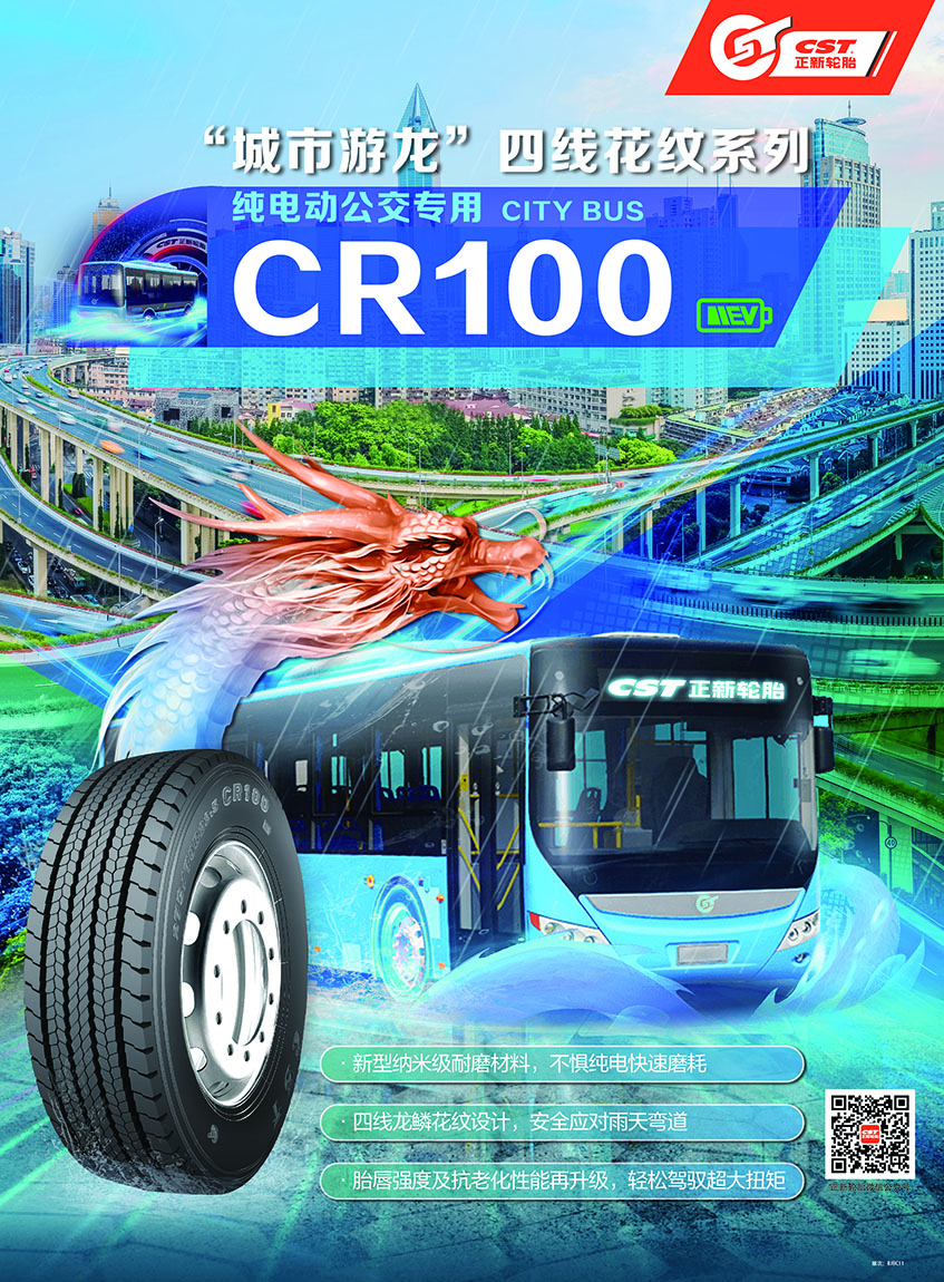 作为全球知名轮胎品牌,正新轮胎紧随市场趋势,于2023年底在第12届上海国际客车展上隆重发布了公交客运纯电动专用胎新品——“城市游龙”系列四线花纹产品CR100EV,针对行业痛点全面升级产品性能,进一步满足纯电动公交市场对于高品质专用轮胎的需求。