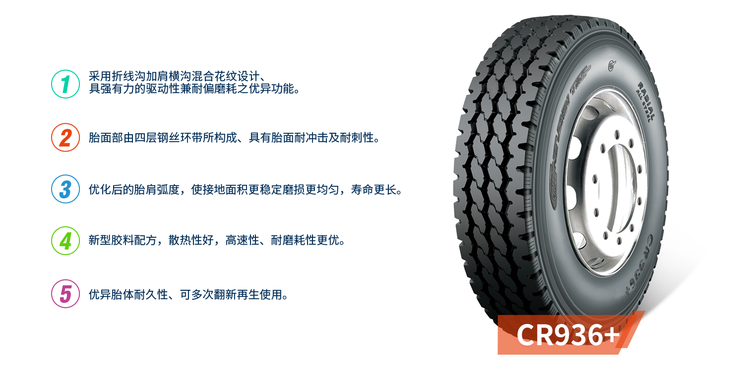 专为重载,中短距离、高速行驶于良好铺装路面车辆设计,适合卡货车全轮位使用。